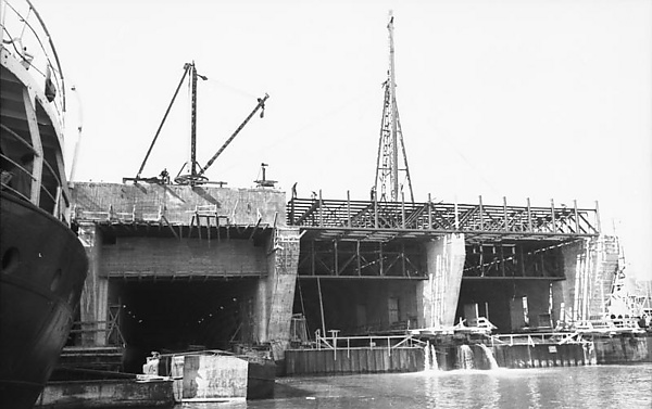 Строительство, порученное Организации Тодта, началось в 1941 и закончилось в 1942 году (за 500 дней). Кригсмарине использовало ранее созданную инфраструктуру на реке Панфельд: место для базы было выбрано недалеко от военно-морской академии (в местности, имеющей название «4 насоса»).