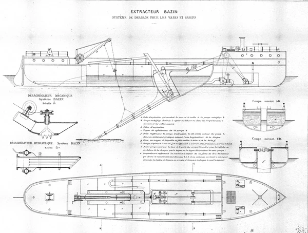 В 1871 году изобрёл и запатентовал экстрактор Базена — специальное судно, служащее для откачки песка и ила с подводных объектов. В дальнейшем экстрактор показал свою эффективность на Суэцком канале и в других местах. Базен наладил производство экстракторов в Нанте, и доход от их продажи позволил ему жить и финансировать другие исследования[23][24][Комм 9]. В 1878 году экстрактор был также представлен широкой публике на Всемирной выставке в Париже[25].