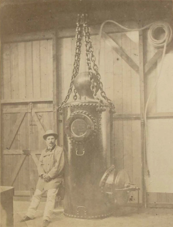 В 1865 году Базен разработал усовершенствования в конструкцию водолазного колокола: колокол выполнялся из прочной стали, имел два иллюминатора и соединялся с поверхностью электрическим кабелем, от которого работал осветительный подводный прожектор. Недостатком колокола было отсутствие системы подачи воздуха — использовался лишь воздух, находившийся в колоколе перед погружением[17]. В том же году он лично испытал его, погрузившись в нём в море неподалёку от Шербура. По свидетельству сотрудника журнала Le Génie industriel, Базен демонстрировал ему фотографии, снятые во время спуска в колоколе на грубину 80 — 90 метров — ему удалось получить их благодаря электрическому освещению подводных глубин и длинной выдержке (порядка 10 минут)[18]. Таким образом, Базен может считаться одним из пионеров подводной фотографии, однако, ни одна из этих фотографий не сохранилась и, по-видимому, никогда не была опубликована[19].