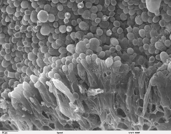 Базидиоспоры (лат. basidiosporae) — репродуктивные споры базидиальных грибов (Basidiomycota), образующиеся на специализированных клетках — базидиях. Как правило, на каждой базидии образуются четыре одноядерных базидиоспоры, хотя существуют и исключения, в частности шампиньон двуспоровый. Ядра базидиоспор образуются в результате мейотического деления, происходящего в базидии, и обладают гаплоидным набором хромосом. При попадании в благоприятные условия базидиоспоры прорастают, обычно формируя гифы, в неблагоприятных условиях базидиоспоры могут при прорастании образовывать вторичные балистоспоры.
