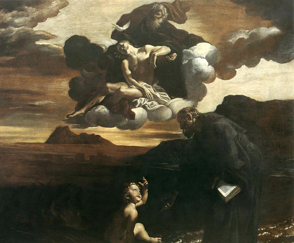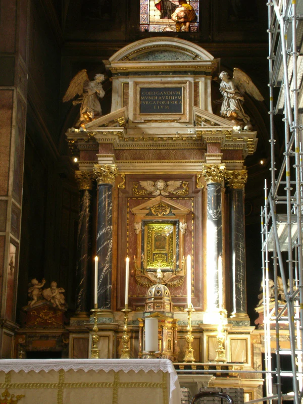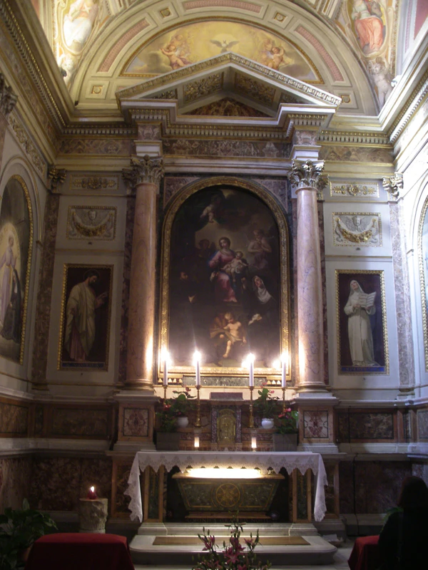 Мраморная скиния главного алтаря в типично барочном стиле спроектирована Орацио Торриани. Справа от алтаря находится картина Гверчино, изображающая святых Августина, Иоанна Богослова и Иеронима. По левой стороне нефа — фреска Рафаэля — Пророк Исайя. В конце левого прохода Капеллы Бонджованни находится цикл картин Джованни Ланфранко, выполненных между 1613 и 1616 годами: на правой стене Святой Августин в размышлении о тайне Пресвятой Троицы, в алтаре — «Коронование Девы между Святыми Августином и Гульельмо», на левой стене Святой Гульельмо, о котором заботится Дева Мария.