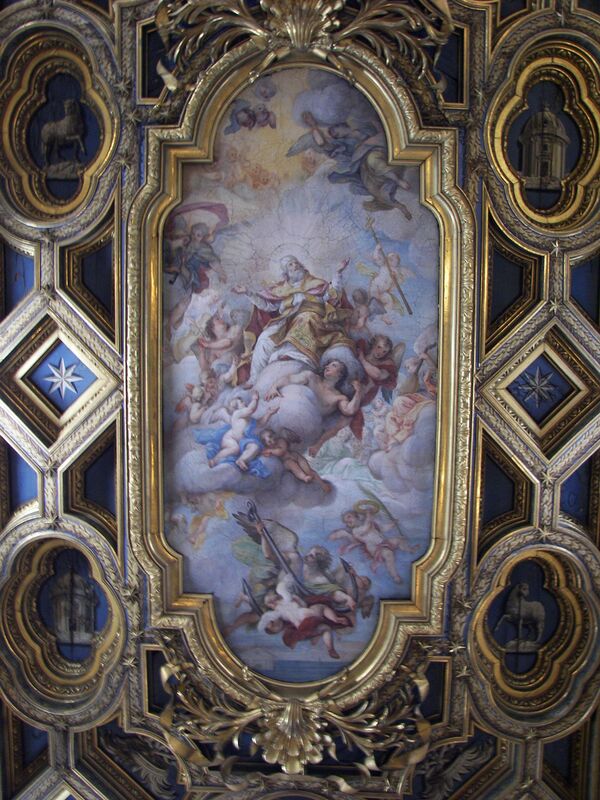 - нижний регистр, первая панель — Екатерина побеждает в диспуте 50 лучших александрийских философов;
