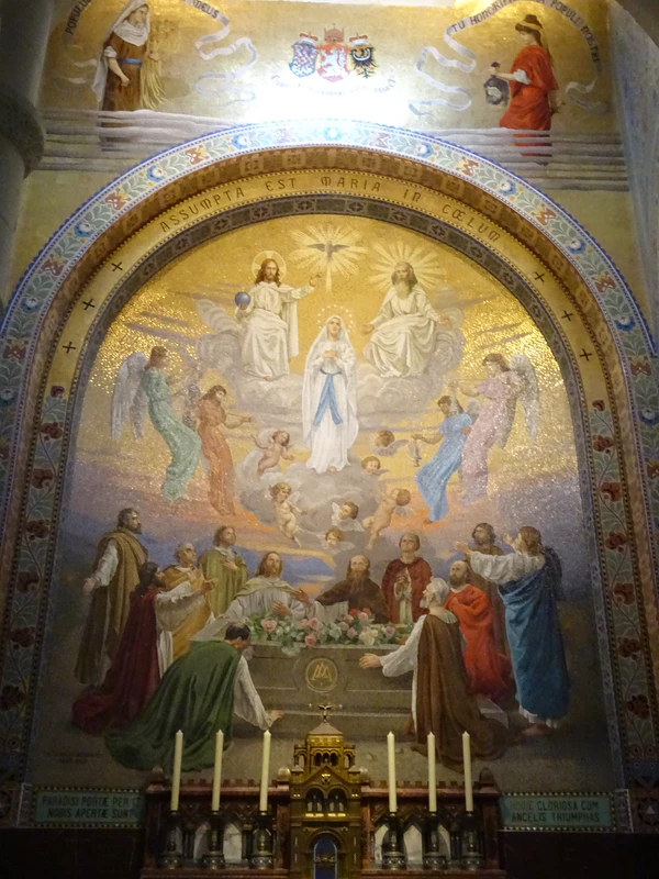 Основным украшением внутреннего убранства базилики являются 15 капелл с мозаиками, посвященные тайнам Розария. В левом рукаве трансепта находятся 5 капелл, посвящённые радостным тайнам Розария, в главном пресвитерии по центру храма — 5 капелл с мозаиками на темы скорбных тайн Розария, в правом рукаве трансепта — 5 капелл с сюжетами на темы славных тайн Розария. Мозаики выполнены коллективом авторов во главе с художником Джандоменико Факкина (en:Giandomenico Facchina). В главном пресвитерии над капеллами скорбными тайн располагается большая мозаика с образом Девы Марии, изображениями ангелов и девизом «Par Marie à Jésus» (Через Марию к Иисусу). Образ Девы Марии выполнен художником-символистом Эдгаром Максенсом[3].