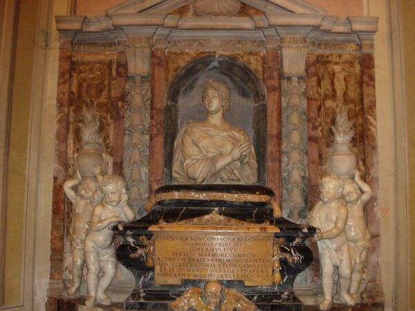 (9) Памятник княгини Элеоноры Буонкомпаньи (умерла 1695), перенесенный в базилику в 1936 году из разрушенной церкви Санта-Лючия-деи-Джиннази