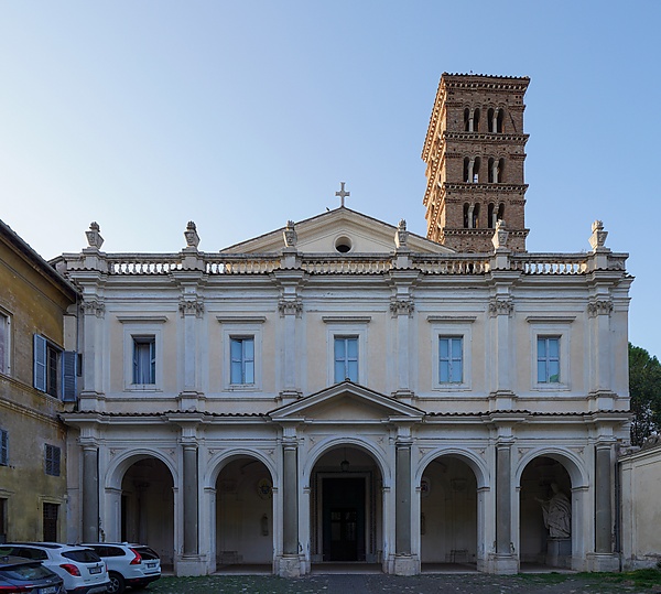 (23) — Романская кирпичная колокольня XII-XIII веков (подобная колокольням Санта-Мария-ин-Космедин, Санта-Чечилия-ин-Трастевере, Санта-Мария-Маджоре, Санта-Мария-ин-Трастевере) высотой более 30 метров.