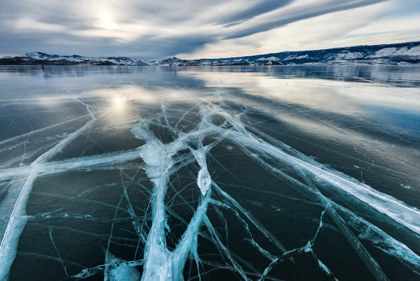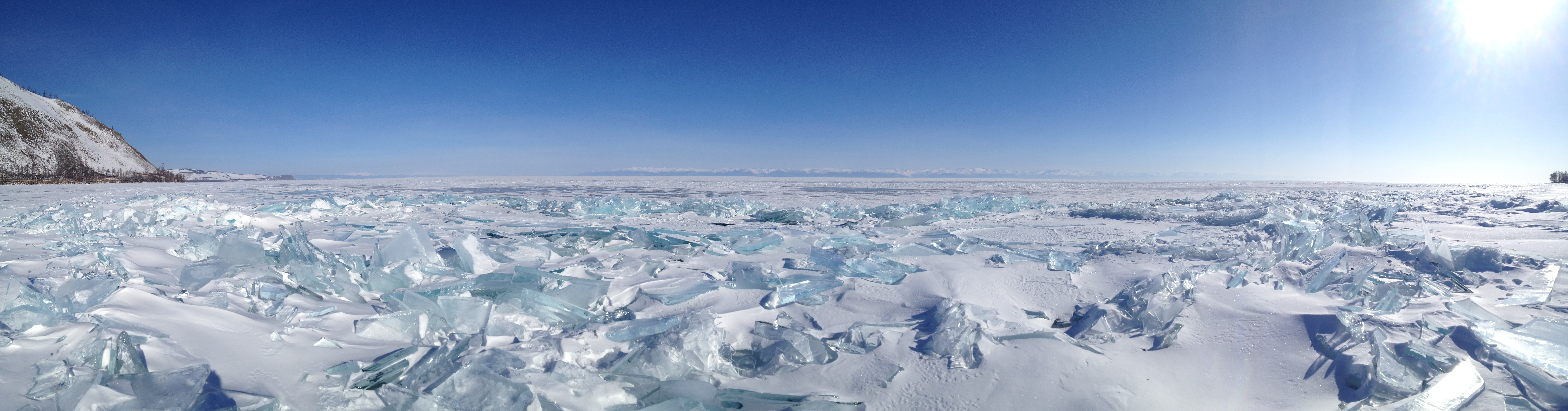 К концу зимы толщина льда на Байкале достигает 1 м, а в заливах — 1,5—2 м. При сильном морозе трещины, имеющие местное название «становые щели», разрывают лёд на отдельные поля[20]. Длина таких трещин — 10—30 км, а ширина — 2—3 м. Разрывы происходят ежегодно, примерно в одних и тех же районах озера. Сопровождаются они громким треском, напоминающим раскаты грома или выстрелы из пушек. Благодаря трещинам во льду рыба на озере не гибнет от недостатка кислорода. Байкальский лёд, кроме того, очень прозрачен, и сквозь него проникают солнечные лучи, поэтому в воде бурно развиваются планктонные водоросли, выделяющие кислород. По берегам Байкала можно наблюдать зимой ледяные гроты и набрызги.