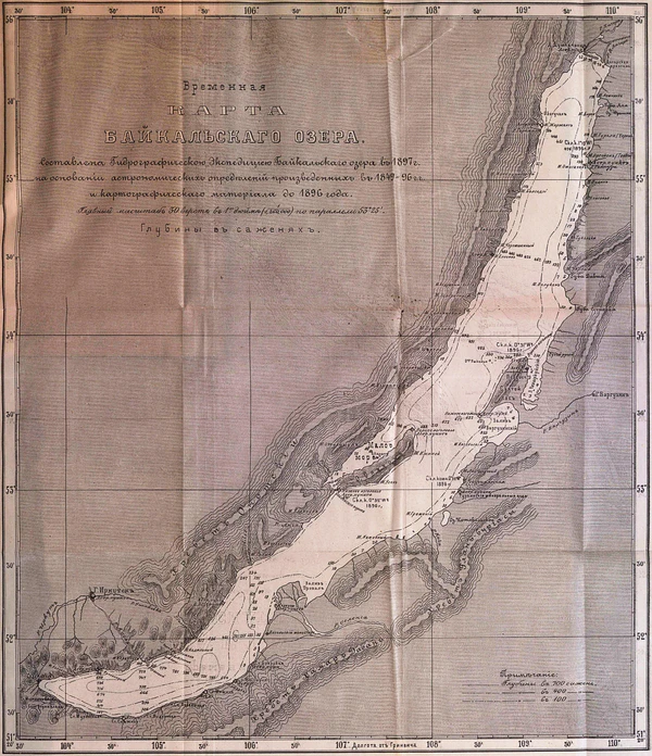 Кто видел Байкал, тот навсегда сохранит в памяти величественные картины этого озера, обрамлённого высокими хребтами. Многоликий Байкал по-разному представляется проезжающим. Одни запоминают его тихим и спокойным, с голубой зеркальной гладью вод; другие — яростно бросающимся на гранитные скалы белыми от пены валами волн; третьи видят Байкал присмиревшим от бурь и волнений, скованным тяжёлым, гулко трескающимся от мороза льдом… В тихую погоду Байкал совершенно иной. Летом случаются дни, когда на водной поверхности нет ни одной морщинки ряби. Тогда в ней, как в гигантском зеркале, отражается далёкое нежно-голубое небо, отчего кристально чистая байкальская вода становится ещё прозрачнее и светлее[18].