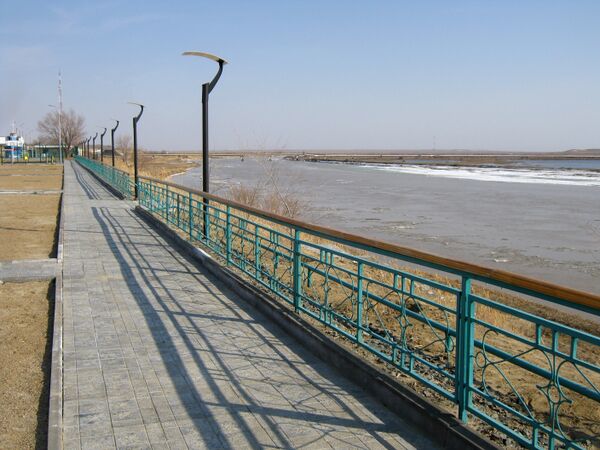 Город протянулся на 5 км вдоль Сыр-Дарьи (урез воды — около 85 м над уровнем моря, ширина реки — 120-200 м, глубина — 1-4 м) и расположен на пологоволнистой слабовсхолмленной равнине с абсолютными отметками 90-100 м. Относительная высота бугров составляет около 10 м, по берегам реки высота обрывов достигает 15-20 м.
