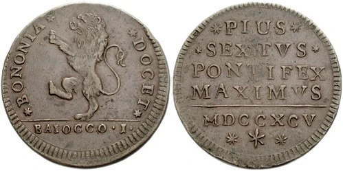 В 1866 году Папская область, как и остальная Италия, присоединилась к Латинскому валютному союзу. Основной денежной единицей вместо скудо стала папская лира, разменной монетой вместо байокко стал чентезимо.