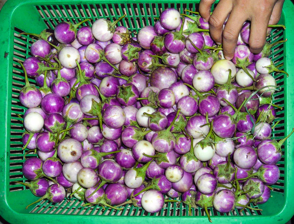 Баклажа́н, или Паслён тёмнопло́дный (лат. Solánum melongéna) — вид многолетних травянистых растений рода Паслён (Solanum). Возделывается как однолетнее овощное растение ради съедобных плодов (в ботаническом смысле это ягода). Родина — субтропики Азии. Народное название «синенькие» баклажаны получили из-за насыщенного фиолетового цвета плодов старых сортов. Плоды современных сортов и гибридов имеют различную окраску (светло-фиолетовую, коричневую, жёлтую) и разнообразную форму (шаровидную и грушевидную, цилиндрическую, приплюснутую)[3]. Их свойства также отличаются: вкус некоторых сортов похож на грибной; яйцевидные белые плоды более пресные, но без горечи; жёлтые — содержат больше всего каротина.