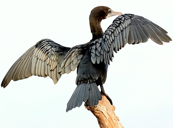 После рыбалки бакланы выходят на берег и часто стоят с расправленными на солнце крыльями. У всех бакланов есть копчиковая железа, выделения которой, предположительно, служат для поддержания водонепроницаемости оперения. Некоторые источники[8] утверждают, что у бакланов водонепроницаемые перья, другие — что перья водопроницаемы[9][10]. Внешнее оперение впитывает воду, но не пропускает её к слою воздуха у кожи[11]. Действие с расправленными крыльями наблюдается даже у нелетающего баклана, но отсутствует у антарктических чешуйчатых бакланов[12] и красноногих бакланов. Среди альтернативных объяснений позы с расправленными крыльями — помощь в терморегуляции[13] или пищеварении, балансировка птицы или сигнал о наличии рыбы. Подробное исследование большого баклана показало, что эта поза действительно служит для сушки оперения[14][15][16].