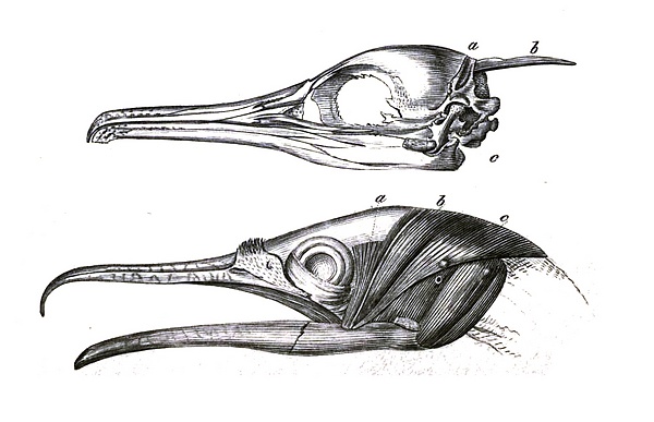 У бакланов и змеешеек имеется уникальная кость на затылке — os nuchale или затылочный стиль, ранее называвшийся мечевидным отростком. Этот костный выступ служит местом крепления мышц, увеличивающих силу смыкания нижней челюсти[5][21]. Эта кость и сильно развитые мышцы над ней, M. adductor mandibulae caput nuchale, уникальны для семейств Phalacrocoracidae и Anhingidae[22][23].