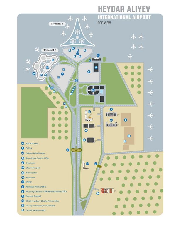 В Международном аэропорту Гейдар Алиев действует два пассажирских терминала и два грузовых терминала.
