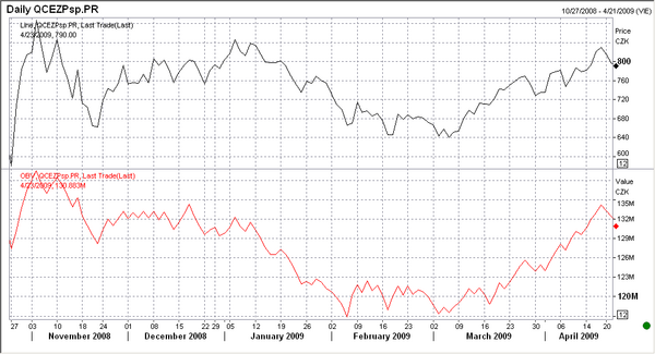 где — значение индикатора OBV в момент , — предыдущее значение индикатора, — объём торгов в момент , — цены закрытия соответственно текущего и предыдущего периода.