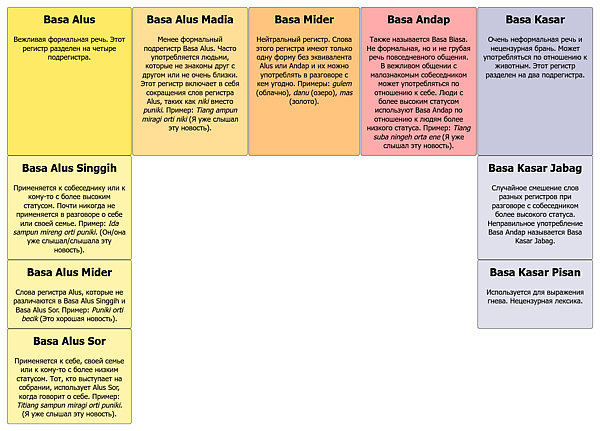 | Русский | Низкий балийский | Высокий балийский | Индонезийский |