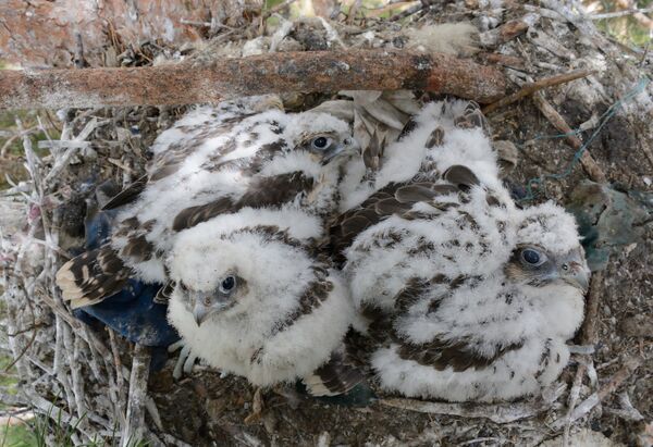 Птенцов выкармливают мелкими птицами, сусликами, полёвками, пищухами. Через полтора месяца птенцы начинают летать.