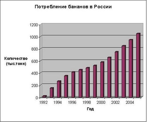 Однако уже к началу XX века бизнес стал быстро развиваться, и с лёгкой руки американского писателя О. Генри (серия рассказов «Короли и капуста») даже появился термин «банановая республика», относящийся к экономически слабым государствам, полностью зависящим от экспорта этих фруктов. Бурный рост индустрии продолжился и в XX веке — только с 1961 по 2001 годы производство товара увеличилось более чем в 3,5 раза[29].
