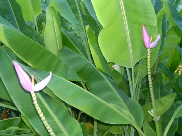 - Карликовый Кавендиш («Dwarf Cavendish») — невысокое (1,8—2,4 м) растение с широкими листьями. Устойчив к низким (до 0 °C) температурам. Плоды ярко-жёлтые, среднего размера, тонкокожие[38]. Внешне этот сорт отличается тем, что, в отличие от других, у него при цветении мужские цветки не опадают, а засыхают, при этом оставаясь на цветоножке. На кожуре зрелых плодов (как и у других сортов из группы Кавендиш) появляются мелкие бурые пятнышки. Растёт в Западной и Южной Африке, а также на Канарских островах. Этот сорт восприимчив к чёрному долгоносику (Cosmopolites sordidus) и к круглым червям (Nematoda).