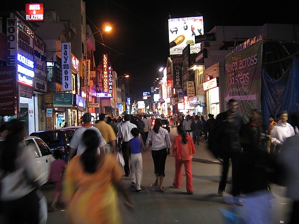 В XIX веке Бангалор по существу разделяется на два независимых друг от друга образования — пётё — состоящее главным образом из представителей народа каннара, и военного лагеря, в котором проживали тамилы[19]. В 1898 году город пережил эпидемию бубонной чумы, в результате которой его население сильно сократилось. Во время эпидемии люди стали переезжать на окраины города, пытаясь уберечься от болезни; таким образом возникло два новых района — Маллешвара (англ. Malleshwara) на севере и Басаванагуди (англ. Basavanagudi) на юге. Для координации необходимой медицинской помощи в Бангалор была проведена телефонная связь и назначен медицинский чиновник. В 1906 году, по окончании строительства гидроэлектростанции в небольшом городке Шиванасамудра, Бангалор первым из индийских городов провёл у себя электричество.