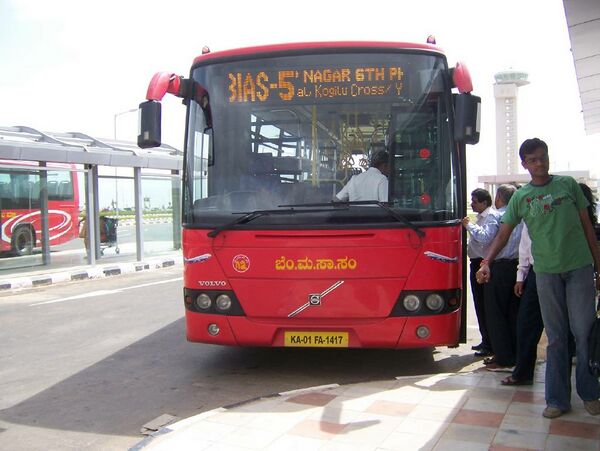 Bangalore Metropolitan Transport Corporation является оператором восьми автобусных маршрутов из разных районов города в новый аэропорт. Стоимость проезда в них выше, чем в обычных автобусах.[3] Автомобильным транспортом в аэропорт можно попасть через Хеббал по Bellary Road, через NH-Yelahanka можно также попасть в аэропорт через Елаханка по Vidyaranyapura, где трафик несколько ниже. BMTC использует 46 автобусов Volvo, периодичность — 30 минут. В автобусах есть багажные отделения и они могут перевозить до 30 пассажиров за каждый рейс. Билеты на автобусы могут быть приобретены через интернет.