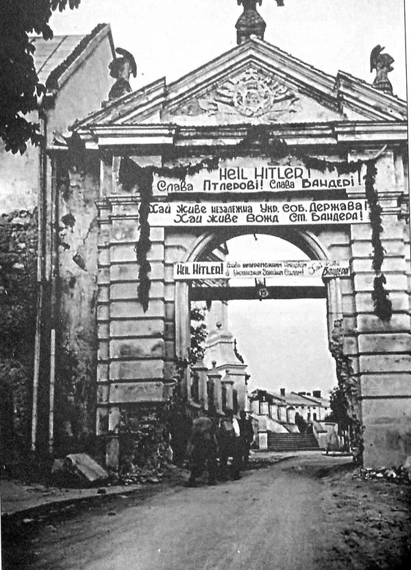 30 июня немцы заняли Львов. В этот же день вечером от лица спешно собранного Законодательного собрания Ярослав Стецько огласил «Акт провозглашения Украинского государства», заявив о создании «нового украинского государства на материнских украинских землях», которое, как рассчитывало бандеровское руководство, должно было получить такой же статус, как и Словакия под руководством Йозефа Тисо или Хорватия под руководством Анте Павелича, и которому предстояло вместе с «Великой Германией устанавливать новый порядок по всему миру»[44].
