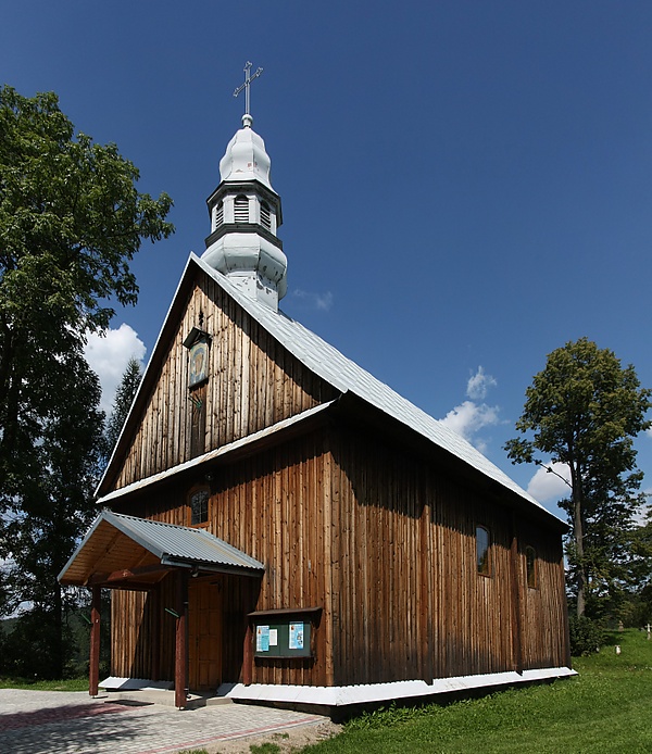 Костёл деревянный. Первоначально построен как греко-католическая церковь в 1882 году в посёлке Ясень. Была отремонтирована в 1904 году. Закрыта в 1951. Использовалась как склад магазина розничной торговли.