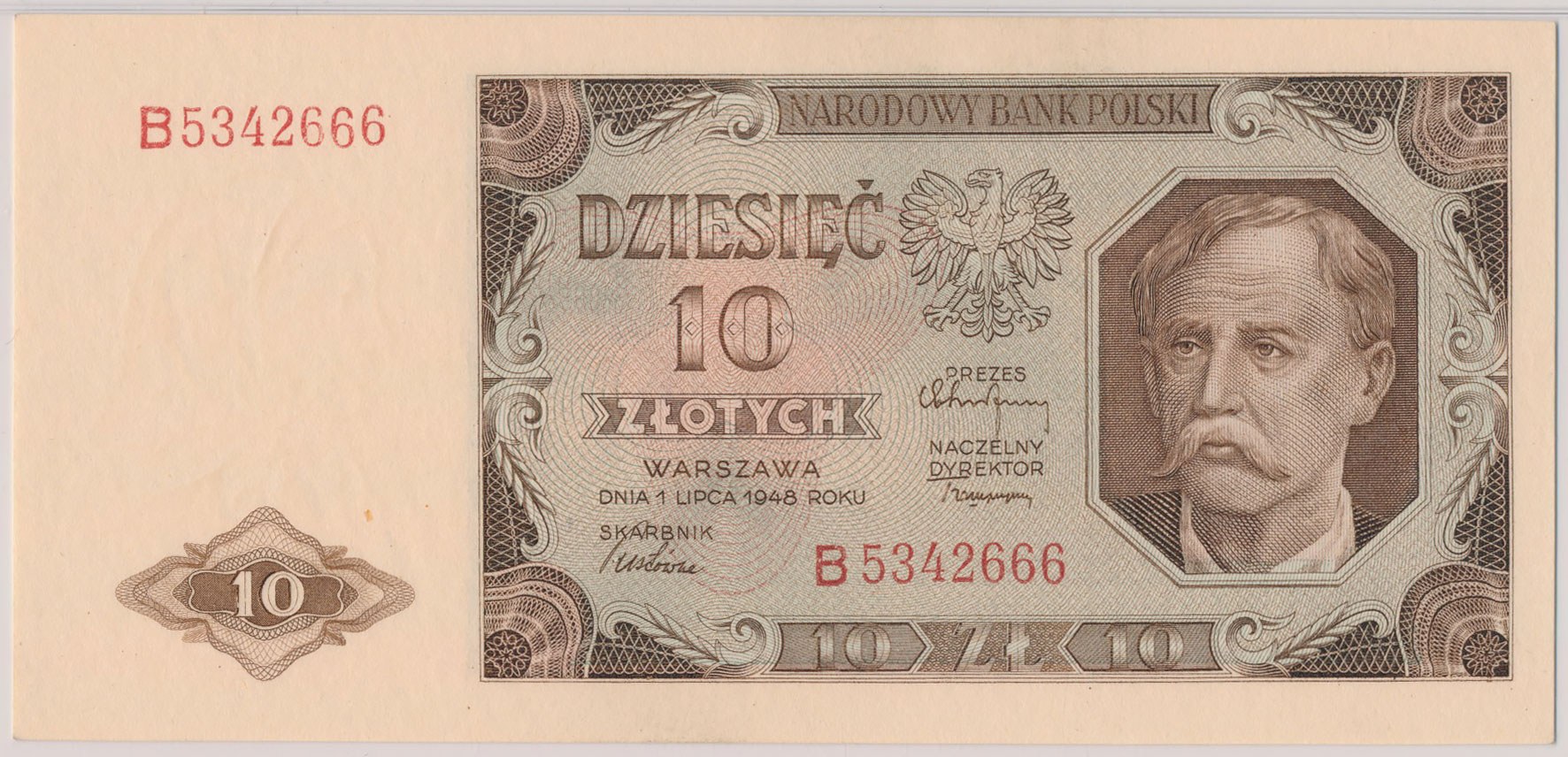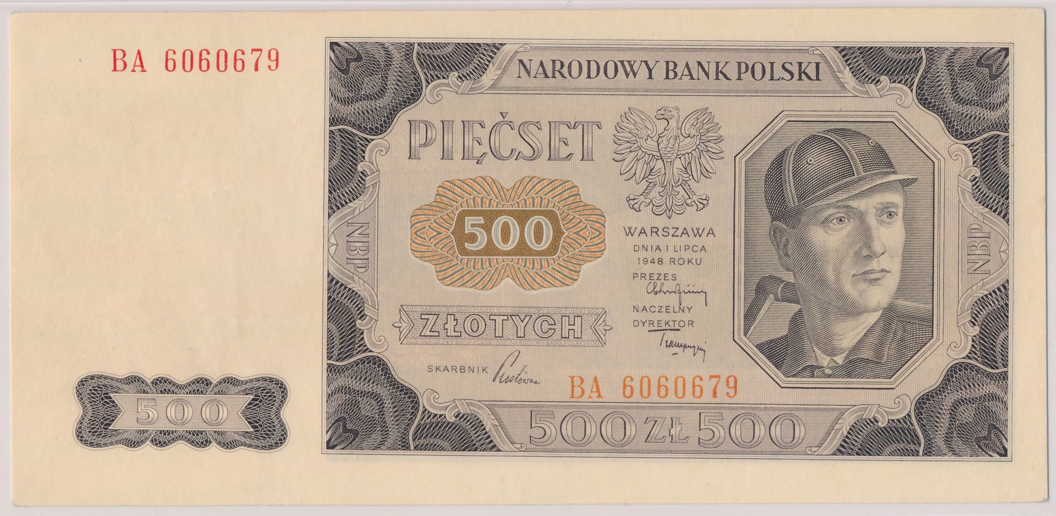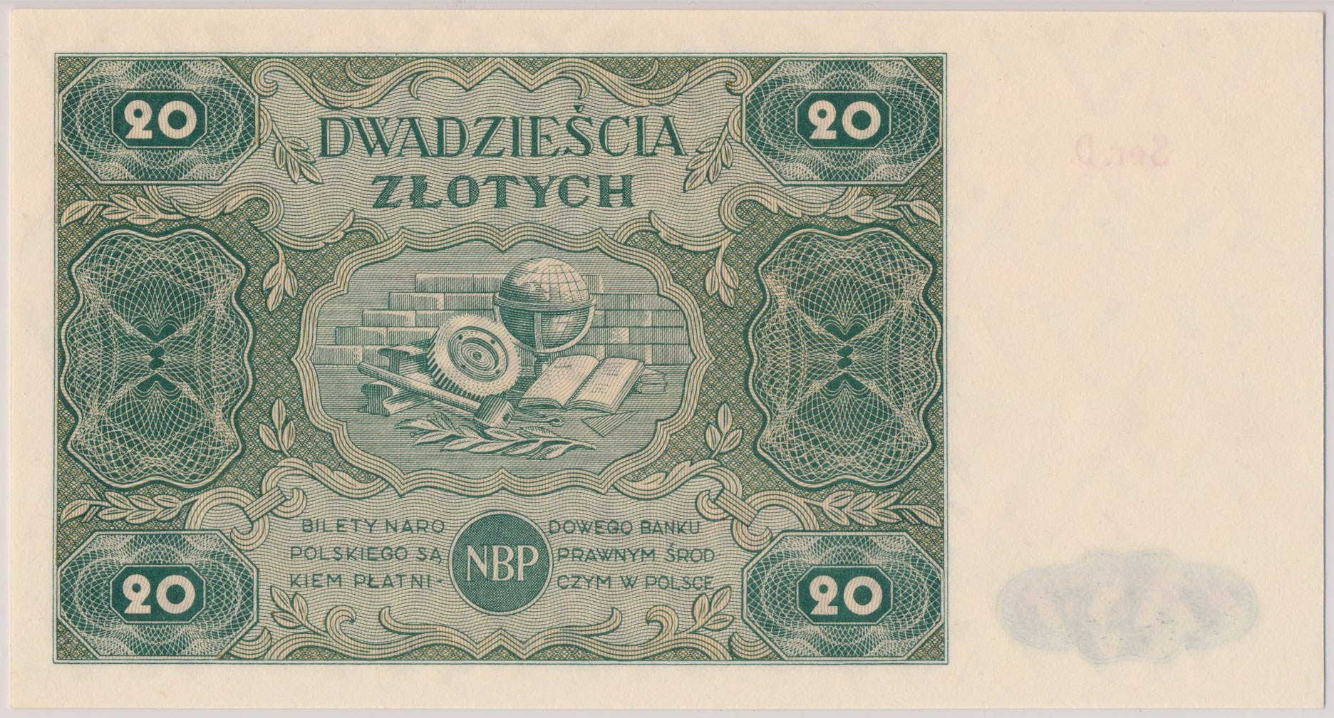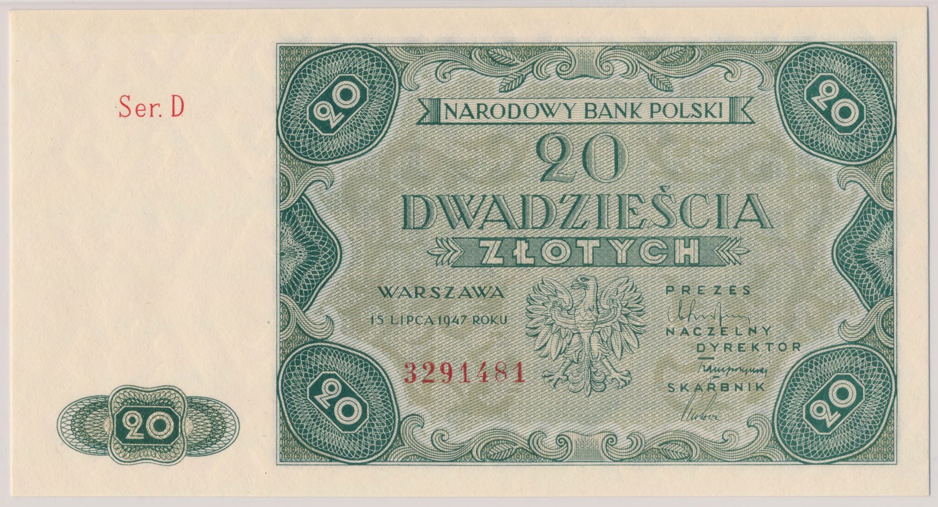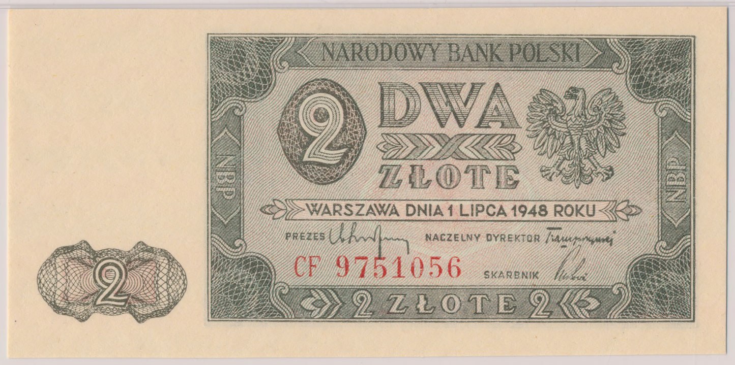 Первые после освобождения Польши банкноты были выпущены в обращение согласно декрета Польского комитета национального освобождения от 24 августа 1944 года. Первоначально они печатались на типографии Гознака в Москве. На этих банкнотах номиналом от 1 до 500 злотых в пояснительной надписи на польском языке была допущена ошибка: во фразе польск. PRZYJMOWANIE WE WSZYSTKICH WYPŁATACH JEST OBOWIĄZKOWE последнее слово было передано как OBOWIĄZKOWYM. Позднее банкноты с этой же датой стали печататься на типографии Народного банка Польши и ошибка была исправлена.