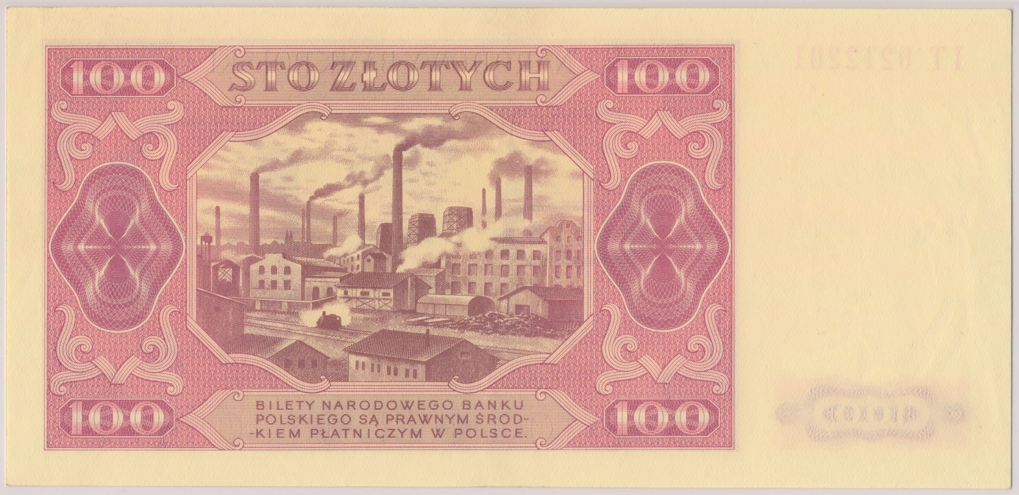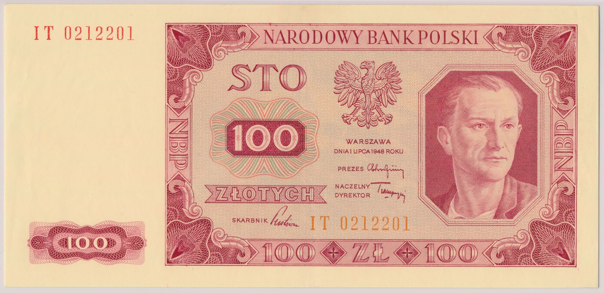 | 100 злотых | 172×82 | красный | портрет рабочего, название банка-эмитента, номинал, дата и место выпуска, подписи |