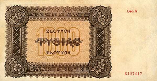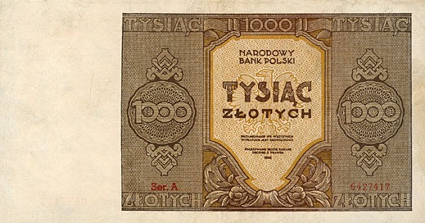 | 1000 злотых | 182×97 | коричневый | 1 сентября 1945 |