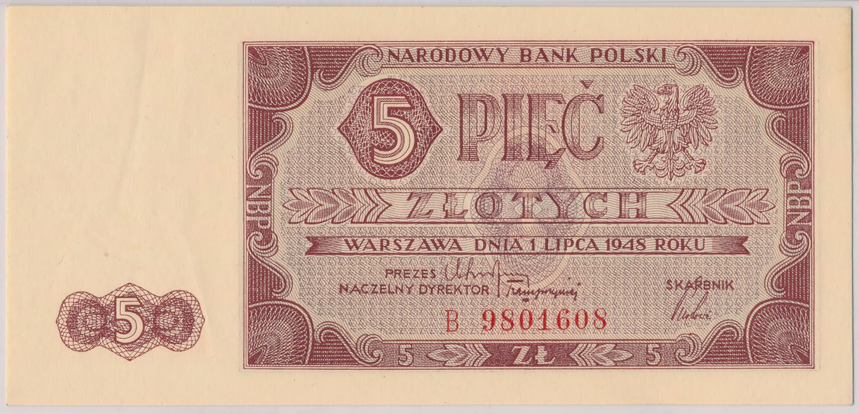 | 5 злотых | 122×66 | серый | 5 февраля 1948 | ||||||