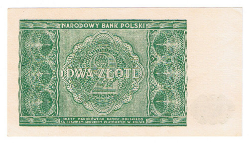 | 2 злотых | 104×57 | зелёный | название банка-эмитента, номинал, пояснительные надписи |