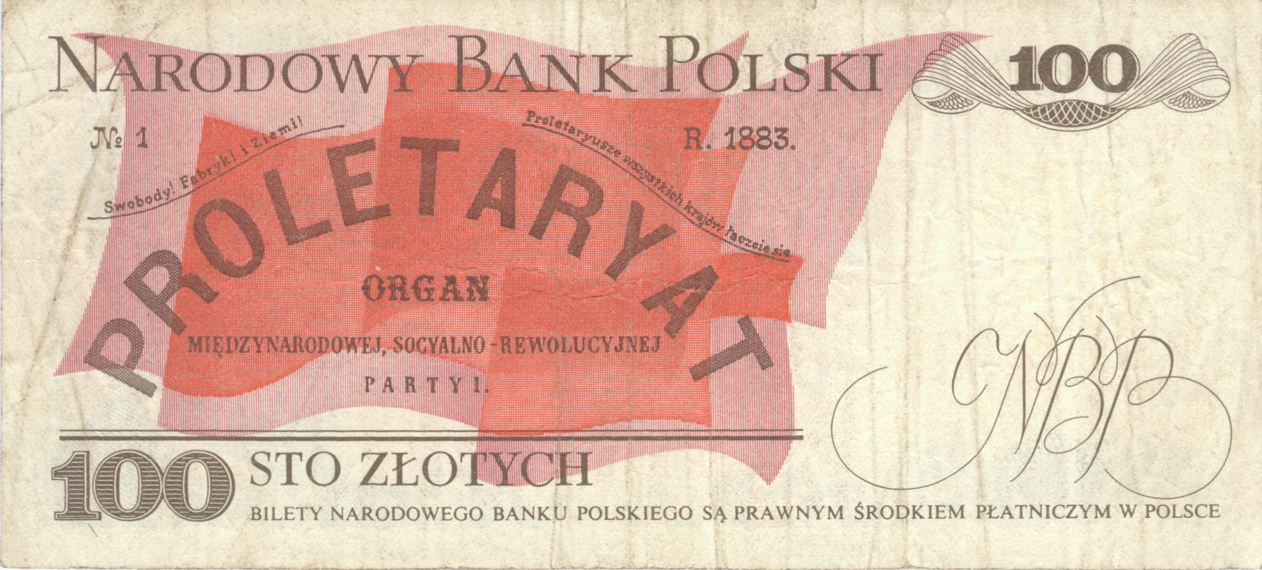 | 100 злотых | красный | Людвик Варынский | газета «Proletaryat» на фоне красных флагов | 01.07.1975 | 15.01.1975, 17.05.1976, 01.06.1979, 01.06.1982, 01.06.1986, 01.12.1988 |