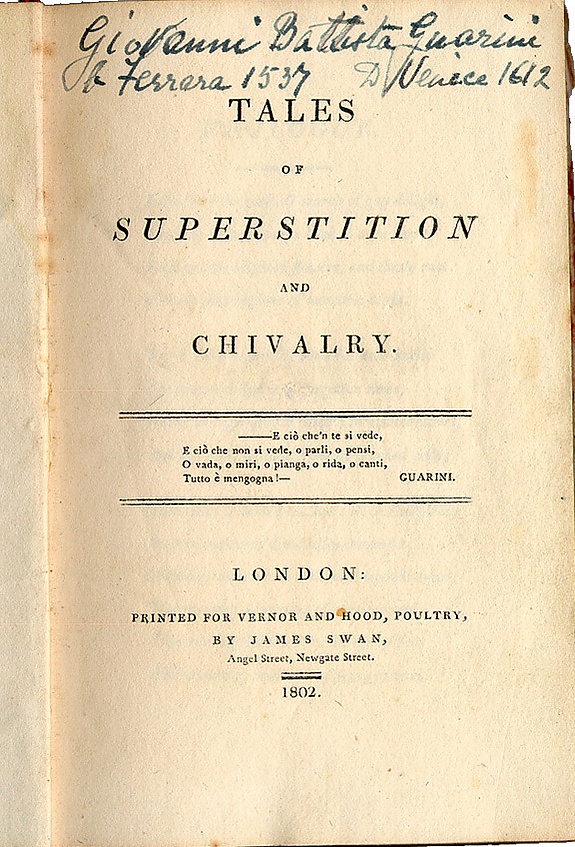 - Сказки о суевериях и рыцарстве (pub. anon.; London: Ann Vernor and Thomas Hood, 1802) (Internet Archive) (Archived transcription; British Women Romantic Poets Project).