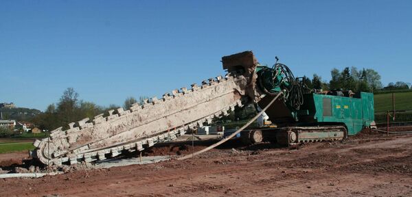 При разработке твёрдого или мёрзлого грунта используются машины, прорезающие в грунте щели с помощью 1—3 баров. Оконтуренные с двух сторон щелами полосы грунта либо разрабатываются с помощью экскаваторов, либо удаляются кранами или лебёдками[6].