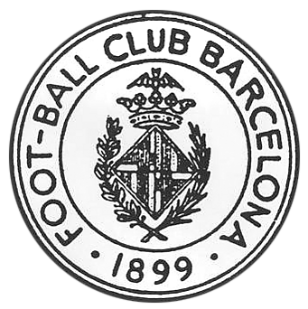 Первоначально в качестве эмблемы клуб использовал расширенный вариант герба города Барселоны — разделённый на четыре части ромб, увенчанный Арагонской короной и летучей мышью короля Хайме I, и окружённый двумя ветвями — лавровой и пальмовой. Ромб был разделён на четыре части, где по диагонали расположены Георгиевский крест (Георгий Победоносец — покровитель Дома Барселоны) и красно-жёлтые вертикальные полосы — королевские цвета Арагона и графов Барселоны с XII века[63].