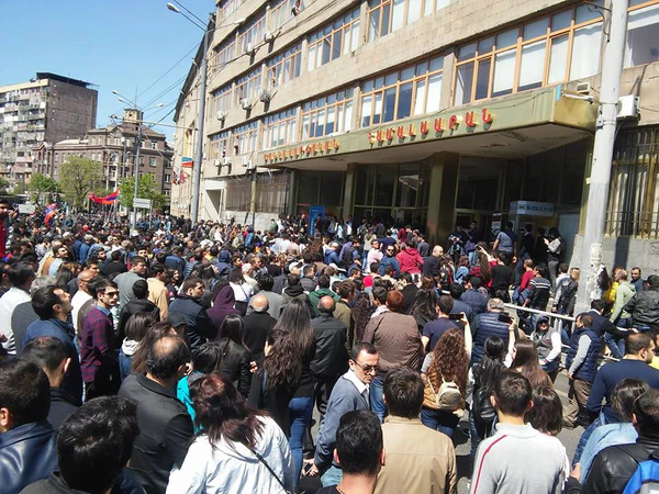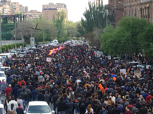 - 15 апреля — протестующие блокировали площадь Франции в Ереване и перекрыли улицу Абовян, где начали сидячую забастовку. Лидер протеста Никол Пашинян со сторонниками перекрыл перекрёсток проспекта Баграмяна и Московской улицы. Позже оппозиционеры маршем прошли по улице Гераци и Налбандяна прямо мимо здания полиции Армении.