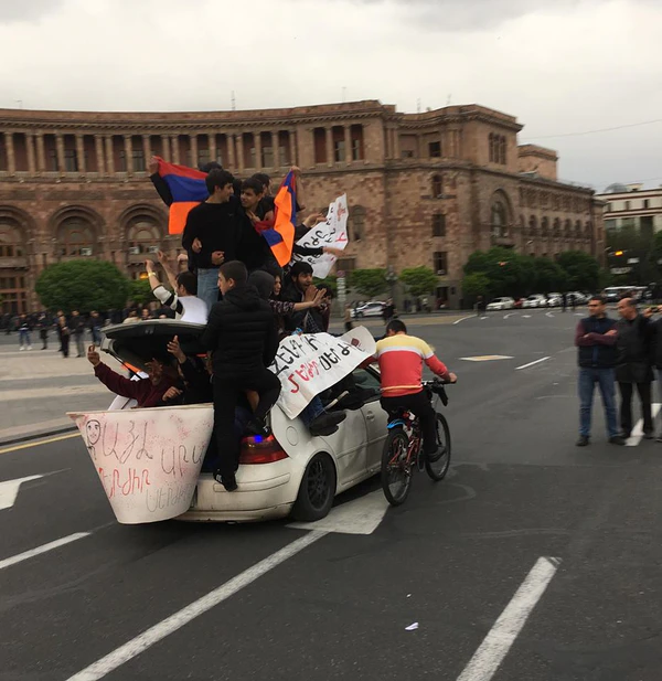 Днём 23 апреля премьер-министр Саргсян подал в отставку. Из ереванского СИЗО были отпущены ранее задержанные оппозиционные депутаты (Пашинян и другие). Временно исполняющим обязанности главы правительства стал первый вице-премьер Карен Карапетян. «Никол Пашинян был прав. Я ошибся. В сложившейся ситуации, у ситуации есть несколько решений, но ни на одно из них я не пойду. Это не мое. Я оставляю должность руководителя нашей страны… „Уличное“ движение выступает против моего пребывания на этой должности, я выполняю ваше требование. Мира, гармонии и логики нашей стране», — говорится в заявлении Саргсяна. На площади Республики собрались десятки тысяч протестующих, которые приветствуют отставку Саргсяна[54]. Правительство ушло в отставку, президент принял отставку.
