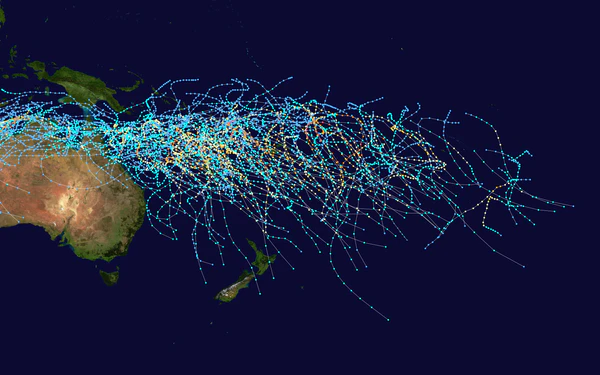 В этом бассейне ежегодно образуется в среднем 9 тропических циклонов[3]. Очень немногие из этих циклонов достигали 5 категории, одним из примеров был циклон Ларри в 2006 году[17].