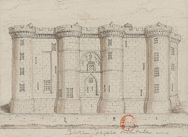 В 1358 году сторонниками дофина Карла здесь был убит парижский прево Этьен Марсель[3]. Спустя некоторое время, уже при Карле V, Бастилия начинает достраиваться, расширяться и принимает наконец в 1382 году вид, мало разнящийся от вида на момент захвата в 1789 году. С этих же пор Бастилия получает характер укреплённого замка, где во время народных возмущений или междоусобиц спасаются короли и другие лица. Это территория богатого монастыря; летописцы того времени называют Бастилию «благочестивым Святым Антонием, королевским замком» (chaste Saint-Antoine, château royal) и причисляют её к лучшим парижским зданиям.