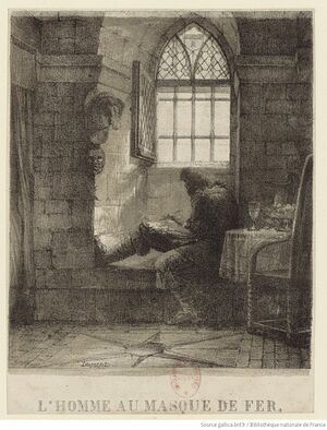 Вторым из более известных узников Бастилии является таинственный обладатель «железной маски»[5] (homme au masque de fer; 1660-е годы), происхождение которого и до сих пор остаётся неразгаданным. Одно из наиболее вероятных предположений — мнение Вольтера, усматривавшего в нём незаконного сына Анны Австрийской, притязаний которого на престол Людовик XIV мог справедливо опасаться.