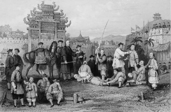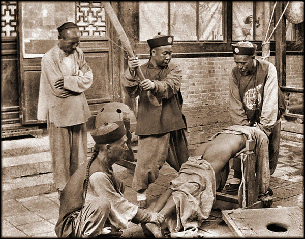 В Китае бастонада представляла собой нанесение ударов главным образом по голым ягодицам и бёдрам растянутого на земле человека[5][6][7]. Бастонада в виде ударов по стопам начинает регулярно использоваться во времена Империи Сун (960—1279)[8]. В Корее приговорённый к бастонаде по стопам должен был сначала сидеть на земле, пока экзекутор не свяжет большие пальцы его ног вместе. После этого экзекутор зажимал ноги приговорённого между своих и бил их по стопам палкой примерно метровой длины и шириною с мужскую руку.[9].