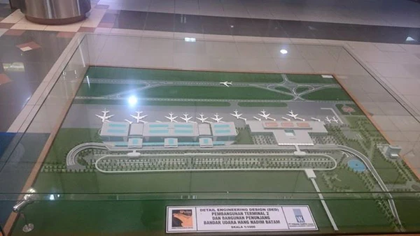 Строительство аэропорта на Батаме было инициировано в начале 1970-х годов в рамках первого этапа развития острова компанией Pertamina. Первоначально планировалось разместить аэропорт в районе Танджунг Унцанг на западе Батама, однако проект был приостановлен из-за возражений властей Сингапура, опасавшихся конфликтов воздушного пространства с базой Пая Лебар. В то время воздушное пространство над архипелагом Риау контролировалось Сингапуром согласно решению ИКАО 1946 года. Впоследствии, после консультаций с сингапурскими специалистами, было выбрано новое место в районе Бату Бесар.