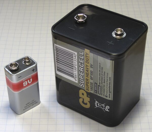 | 6LR61 / 6F22 | Крона | Параллелепипед | 48,5 × 26,5 × 17,5 | 9 | «крона» |