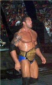 Батиста завоевал титул чемпиона мира в тяжёлом весе 3 апреля в главном событии WrestleMania 21[31]. WrestleMania 21 собрала 1,09 миллиона покупок на PPV — самое большое на тот момент количество покупок для любого небоксерского PPV. Матч Батисты с Трипл Эйчем был описан спортивным журналистом Дейвом Мельтцером как «пик одной из лучших сюжетных линий WWE за последние годы»[32]. Батиста выиграл матч-реванш с Трипл Эйчем за титул чемпиона мира в тяжёлом весе на Backlash. После того, как Батиста сохранил свой титул против Эджа на эпизоде Raw 23 мая, его предал Рик Флэр, который помог Трипл Эйчу напасть на чемпиона. Трипл ЭЙч бросил Батисте вызов на матч «Ад в клетке» на Vengeance[33]. Батиста выиграл матч на Vengeance, снова сохранив свой титул. Благодаря этой победе Батиста стал первым рестлером, который победил Трипл Эйча в матче «Ад в клетке»[34]. 30 июня Батиста был призван на бренд SmackDown! в качестве последнего выбора в лотерее драфта WWE 2005 года, сделав неожиданное появление, чтобы напасть на Джона «Брэдшоу» Лэйфилда (JBL), который праздновал свою победу в матче на выбывание[35]. JBL победил Батисту на The Great American Bash по дисквалификации после того, как рефери увидел, что Батиста использовал стальной стул. Они провели матч-реванш на SummerSlam в матче без правил, в котором Батиста удержал JBL[36]. Кульминацией вражды стал матч с техасским бычьим канатом, состоявшийся 9 сентября на SmackDown!, в котором Батиста сохранил свой титул чемпиона. Вскоре после сохранения титула в противостоянии с Эдди Герреро на No Mercy[37], 11 ноября сайт WWE сообщил, что Батиста получил разрыв мышцы спины[38]. Планировалось, что Батиста будет защищать титул в матче «тройной угрозы» с Эдди Герреро и Рэнди Ортоном 18 ноября на SmackDown!, но матч не состоялся из-за неожиданной смерти Герреро 13 ноября. Батиста отдал дань уважения Герреро во время трибьют-шоу на Raw и SmackDown!, посвященных памяти Герреро[39].