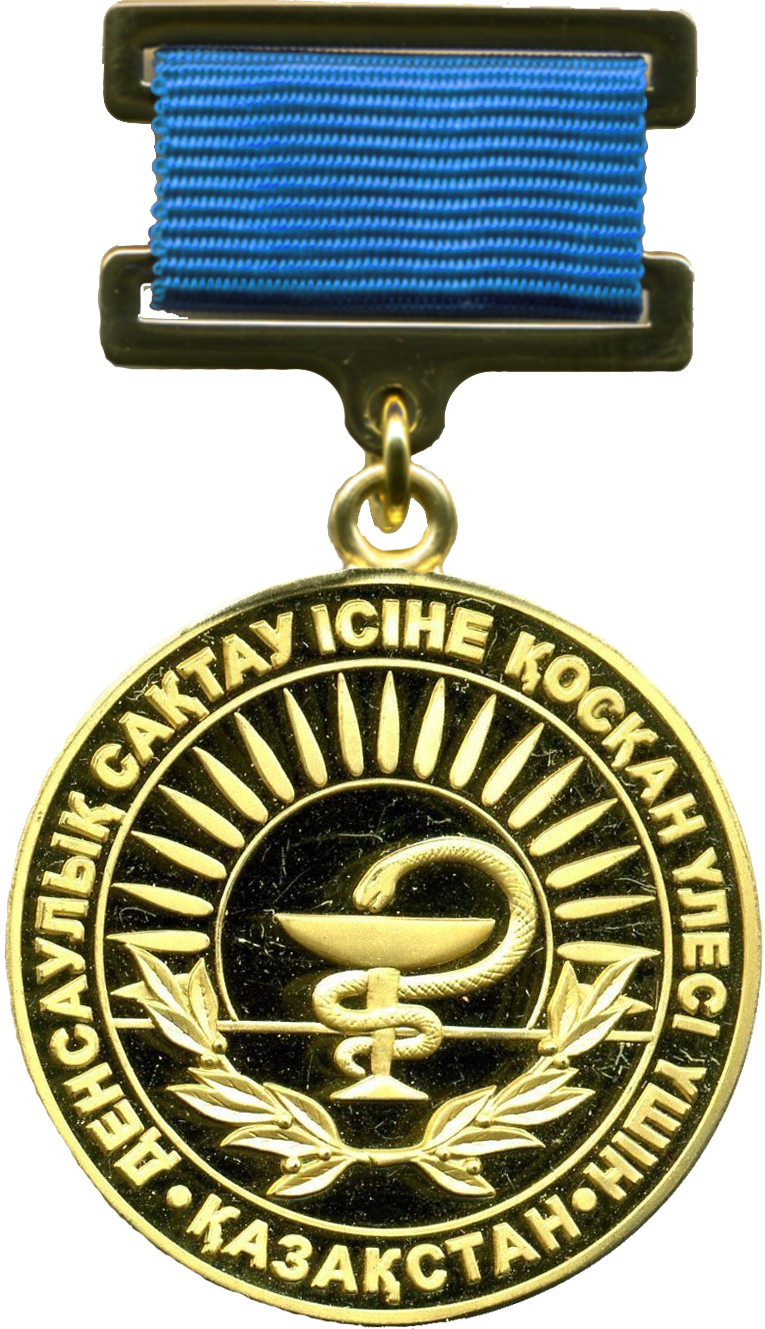 - Нагрудный знак «За вклад в развитие здравоохранения Республики Казахстан»