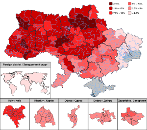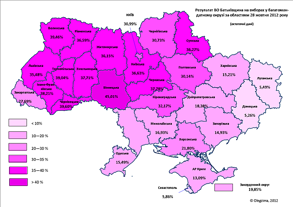 По результатам ЦИК партия Тимошенко ВО «Батькивщина», которая получила 4093 депутатских мандата (12,39 %), стала одной из партии — лидеров на местных выборах на Украине.