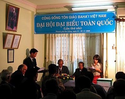 Ежегодно в мире бахаи избираются 182 национальных духовных собрания (с 2001 года число неизменно). Духовных собраний (ни местных, ни национального) нет в Иране, где бахаи по-прежнему подвергаются преследованиям[27][28]. Существует более 13 тыс. местных духовных собраний (органы самоуправления общины уровня отдельного населённого пункта (регионального значения); данные за 2005 год).