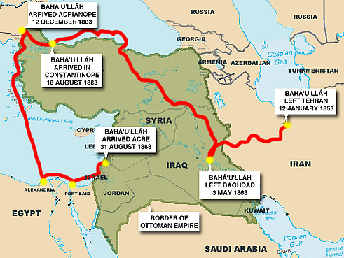Бахаулле грозило дальнейшее тюремное заключение в Османской империи, первоначально в Эдирне, и в конечном итоге в тюремном городе Акко (современный Израиль), где он провел свои последние 24 года жизни. Его место захоронения является местом паломничества его последователей. В соседней Хайфе находится Всемирный центр бахаи.