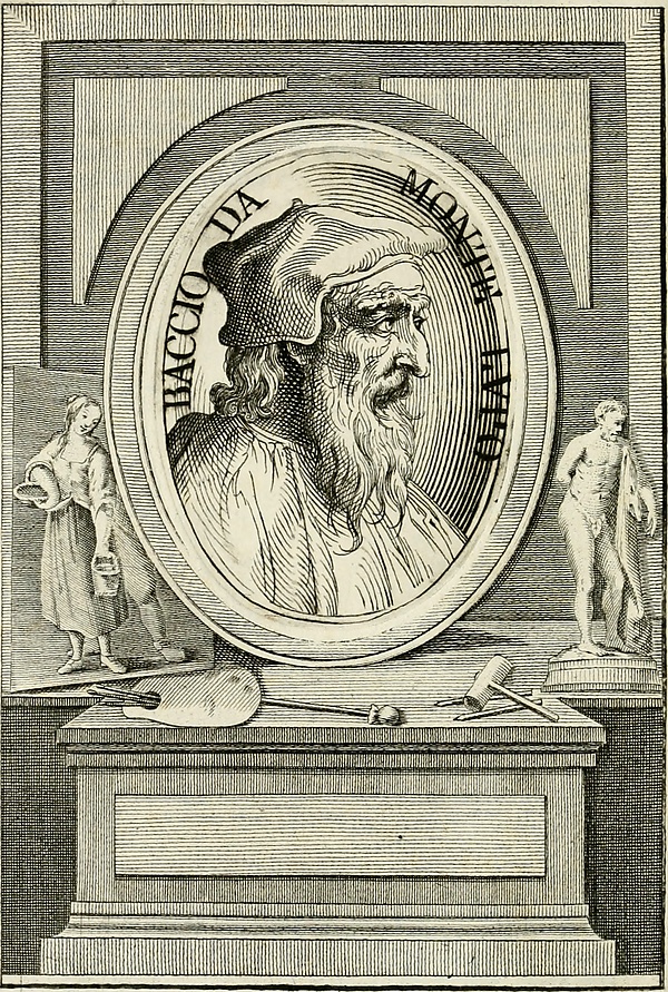 Говорят, что когда он сделал фигуру из глины, те, кто видел, как у него устроены леса и подготовлена форма, поняли, как хорошо это сделано и как велик талант Баччо в вещах подобного рода. А те, кто видел, с какой легкостью прошло литье, сочли это великолепнейшим достижением, признав, что Баччо с величайшим мастерством создал прочнейший и великолепный образец бронзового литья. Преодолев такие трудности в своем деле, он прослыл мастером хорошим и даже превосходным, да и ныне, больше чем когда-либо, фигура эта почитается всеми художниками прекраснейшим произведением[6]