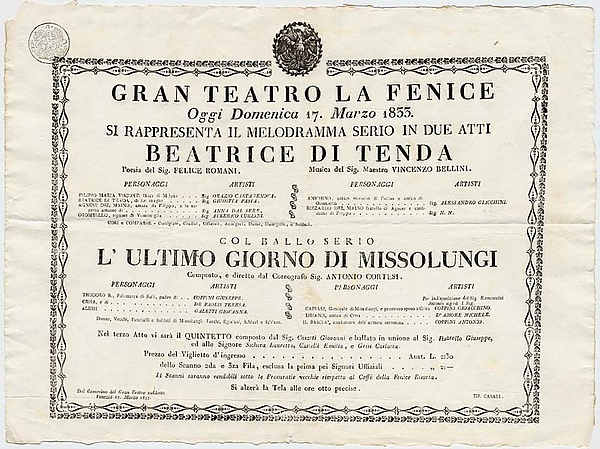 Беатриче ди Тенда (итал. Beatrice di Tenda) — лирическая трагедия в двух актах итальянского композитора Винченцо Беллини. Итальянское либретто Феличе Романи. Премьера состоялась 16 марта 1833 года в Венеции в театре Ла Фениче. В подготовке постановки активное участие принимала примадонна итальянского театра Джудитта Паста. Она же и исполнила партию Беатриче на премьере.